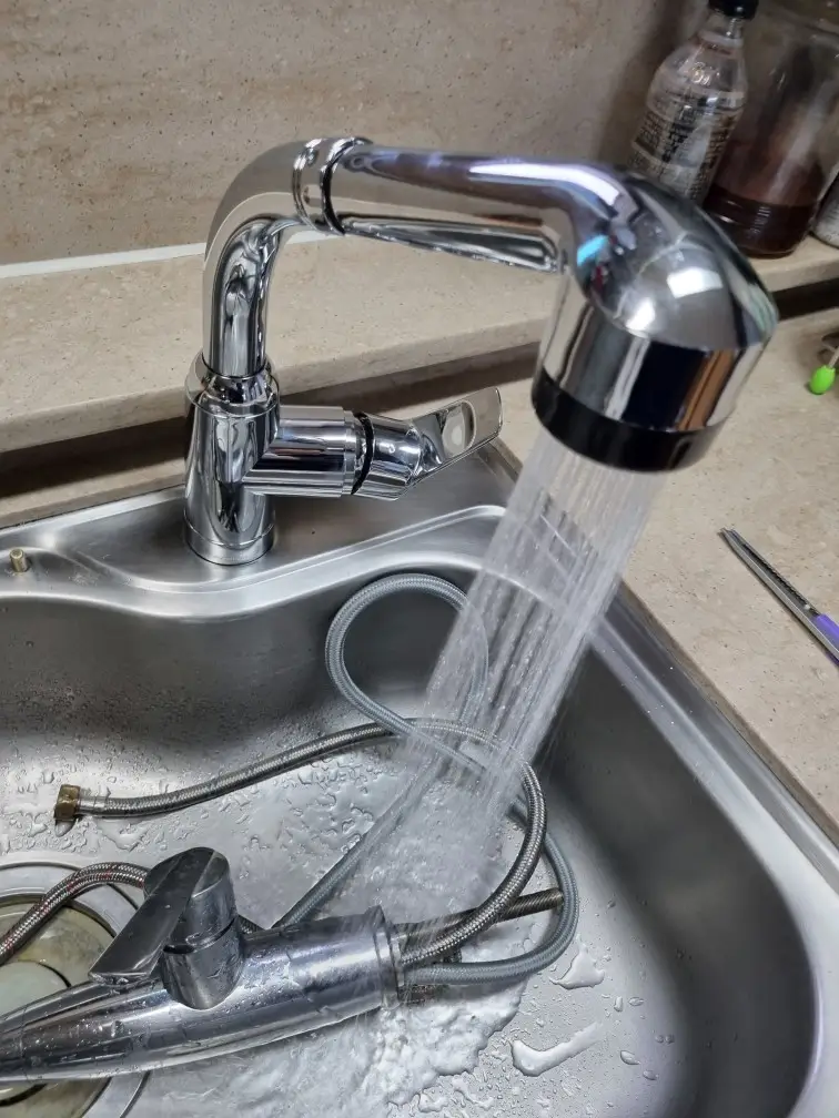 다양한 온도로 여러 번 테스트하여 수전 기능이 안정적인지 점검했습니다. 수전 헤드에서 나오는 물줄기가 일정하고 강한지도 확인했습니다. 모든 기능이 정상적으로 작동함을 확인했습니다.